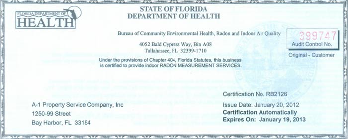 FLORIDA STATE RADON MEASUREMENT SERVICES BUSINESS